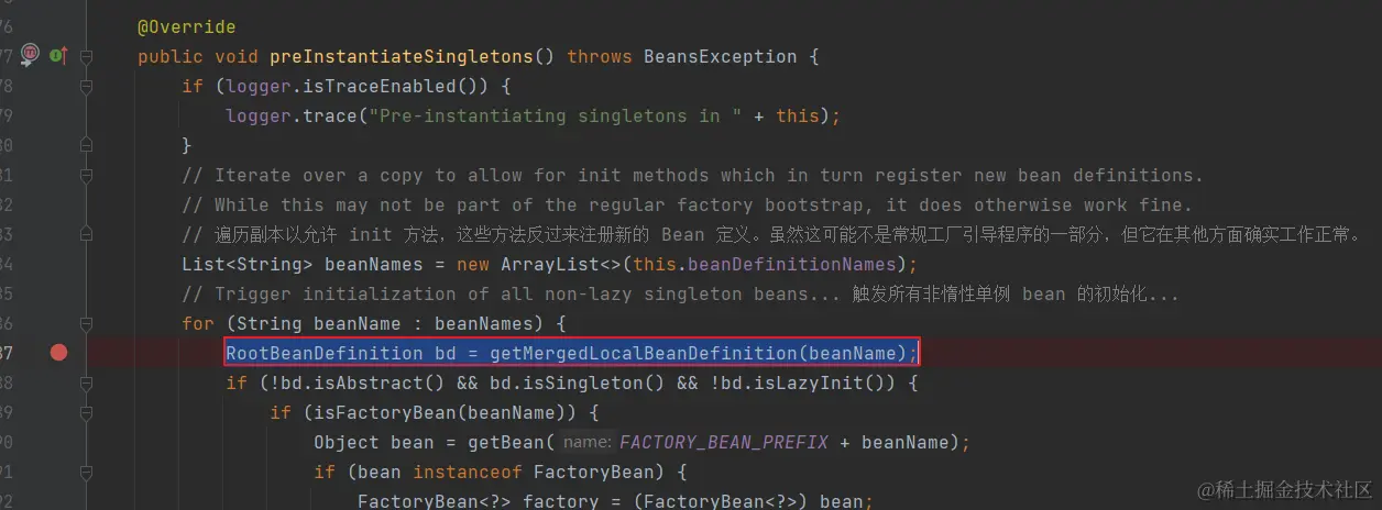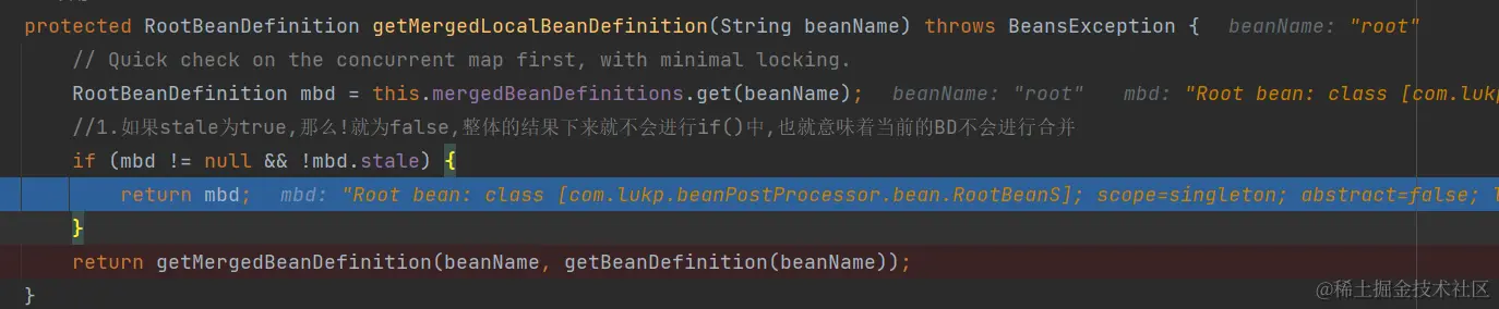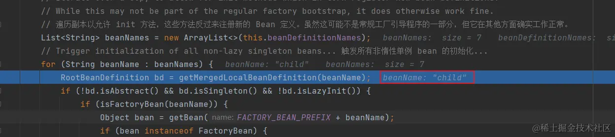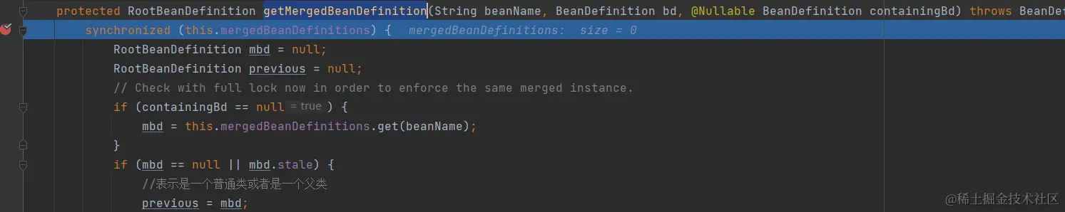 - 在最开始的时候用我们先走完正常的流程,那其实对于 spring 来说添加@Lazy 注解就是一个不太正常的过程,所以我们当时是直接跳过了其中的一行代码: