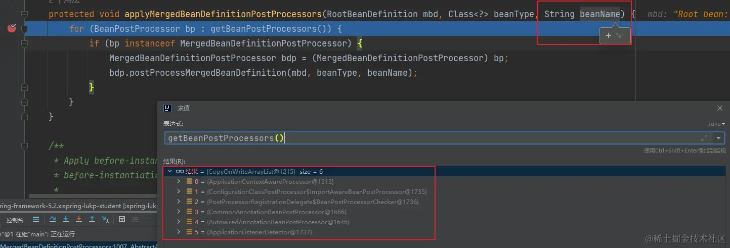 下面是applyMergedBeanDefinitionPostProcessors方法的内容: