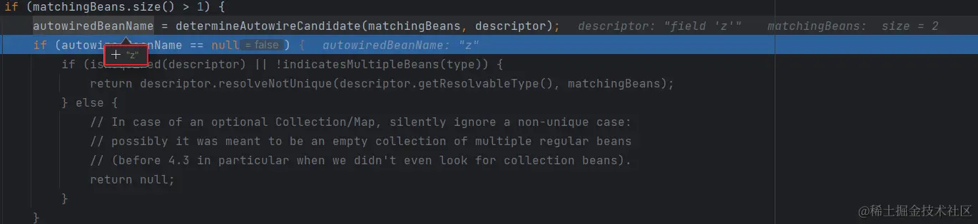 - 然后接着往下走,使用 determineAutowireCandidate 方法开始推断 到底是注入那个 bean: