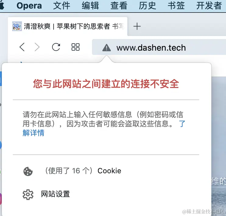 但因为网站下有部分资源使用了http,所以浏览器依然没有变为安全锁,