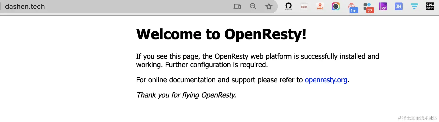 再次重启nginx,这时请求dashen.tech就可以跳转到www.dashen.tech