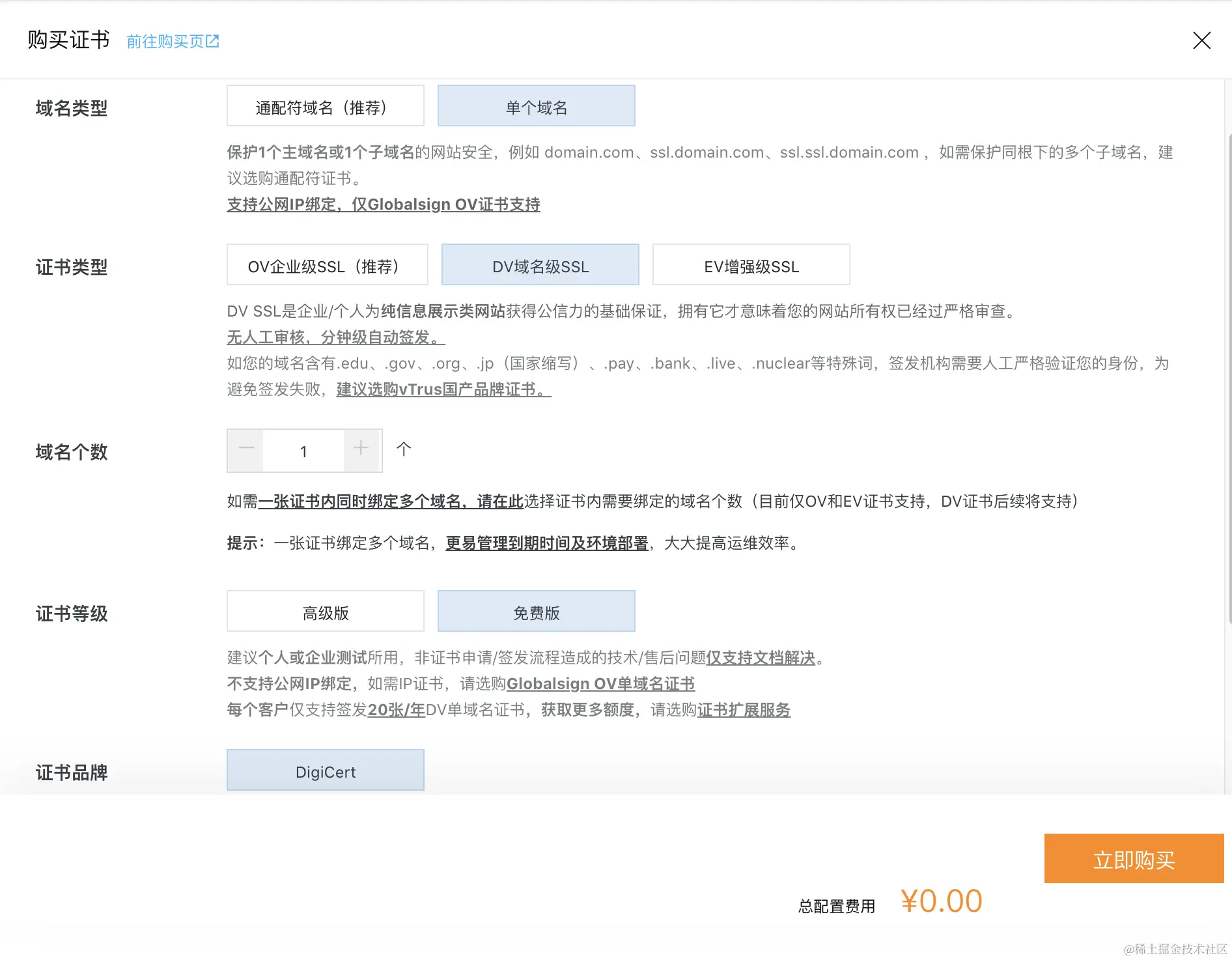 一般免费版,只有一年有效期.到期需要重新申请&更换