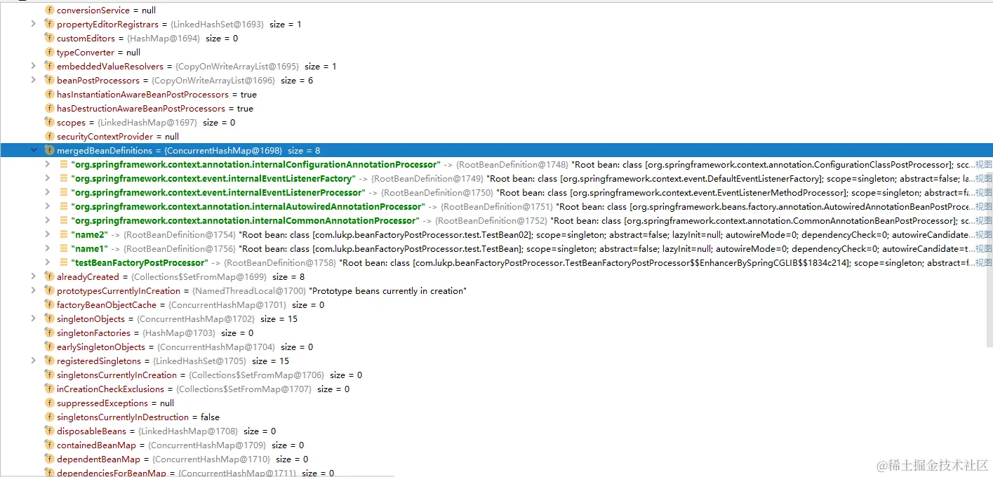 - 在上文我们说了注册bean的相关方法和冻结bean的相关方法,我现在来看一段代码: