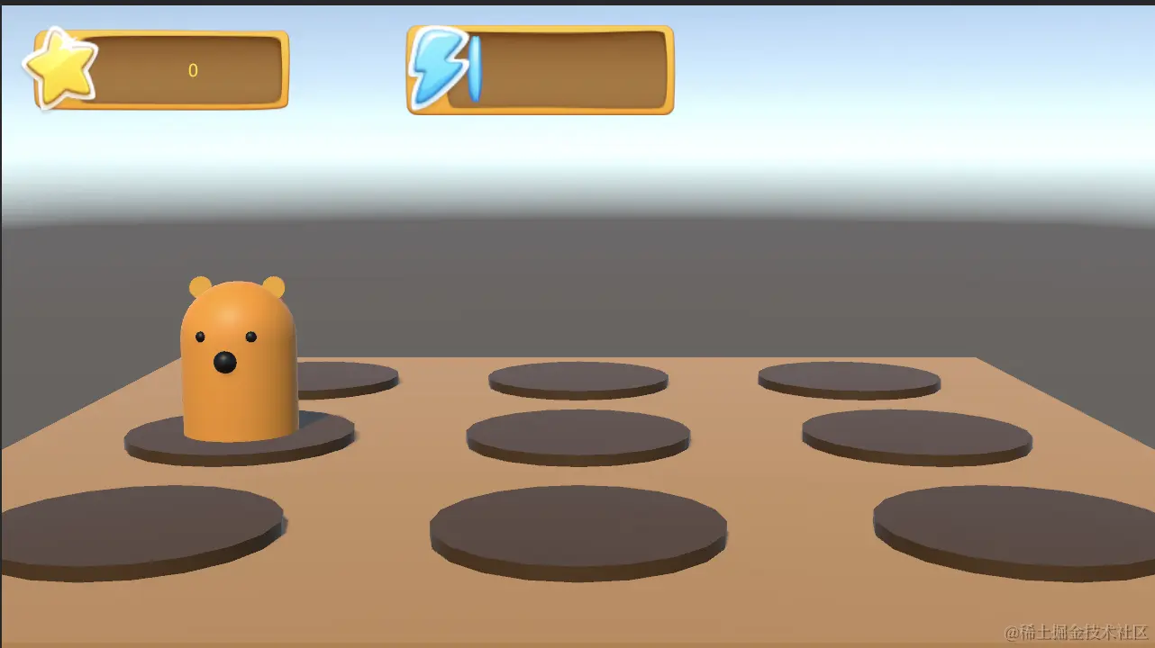 在最后对地鼠洞口与地鼠位置进行对齐时,需要适当对摄像机属性进行调整。如果在Game游戏窗口看不到物体画面时,可以适当调整物体位置属性。