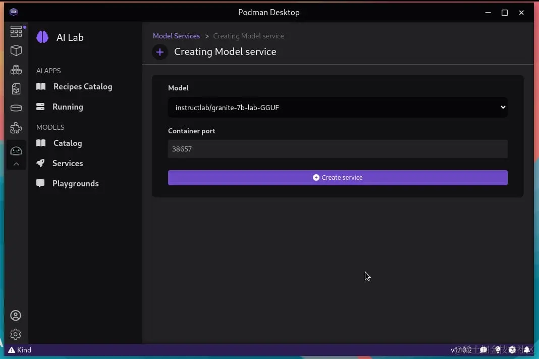 图 3:使用 Podman AI Lab 创建你的第一个服务。
