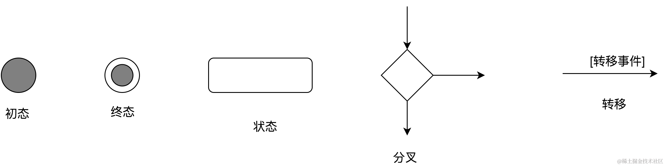 状态图用来展示单个对象生命周期的各种状态,以及在事件触发条件下状态变迁。状态机图清楚地描述了状态之间的转换及其顺序,这样就方便产品和研发看出事件的执行顺序。状态图有以下元素组成: