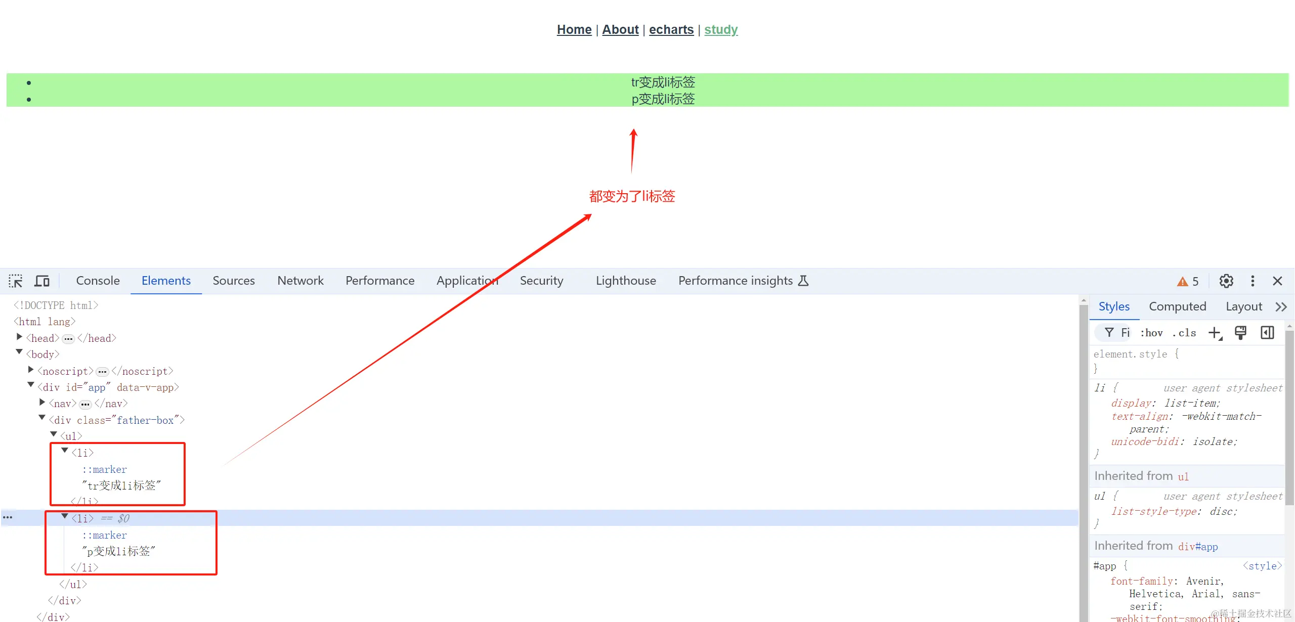 <tr is="vue:li">tr变成li标签</tr>
