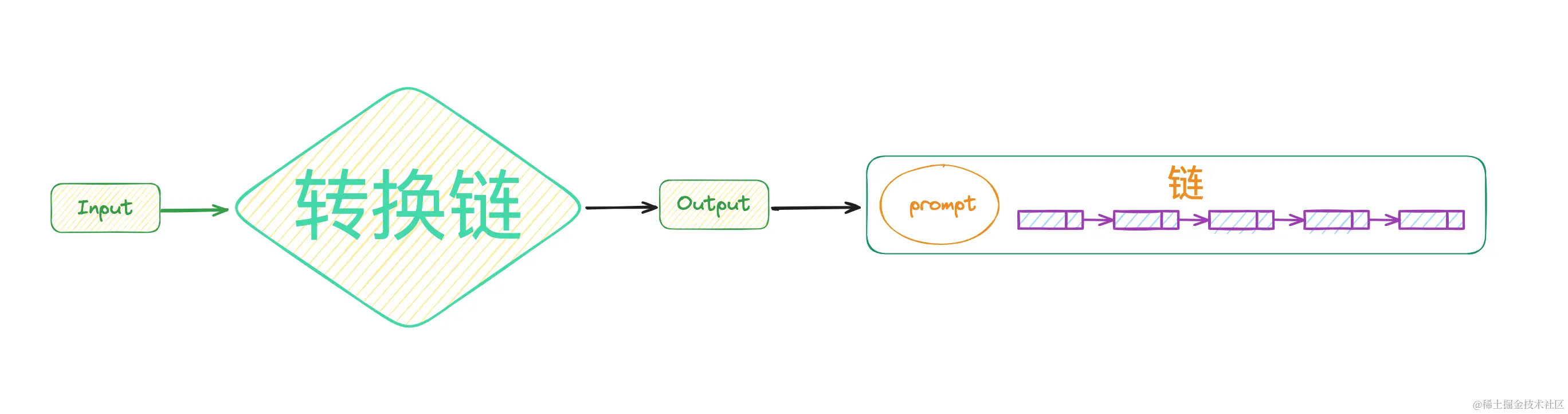 其实,转换链的设计也很精妙,从源码可以看出,它只是做了一条链,然后具体的任务完全丢给了外部的函数来实现。在LangChain里只要是链,就可以随处链接。
