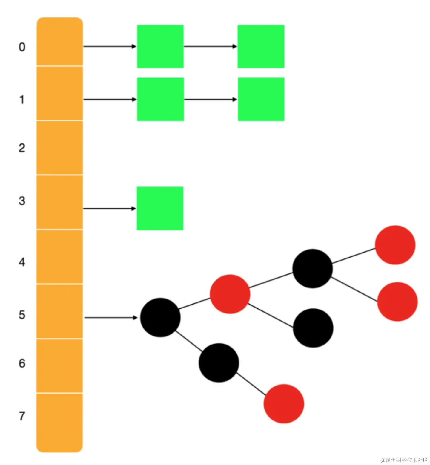 - 防止发生hash冲突,链表长度过长,将时间复杂度由O(n)降为O(logn);