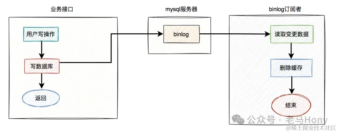 前面我们聊过的,无论是定时任务,还是mq(消息队列),做重试机制,对业务都有一定的侵入性。在使用定时任务的方案中,需要在业务代码中增加额外逻辑,如果删除缓存失败,需要将数据写入重试表。而使用mq的方案中,如果删除缓存失败了,需要在业务代码中发送mq消息到mq服务器。其实,还有一种方案,即利用canal等中间件监听binlog,最后我们订阅binlog数据消费。