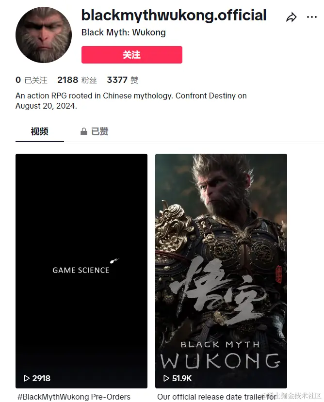 《黑神话·悟空》官方平台:官方X(原Twitter)最早,TikTok仅2条视频
