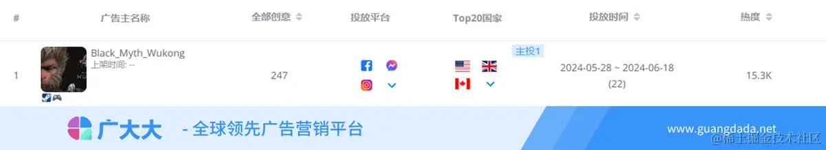 广大大在今年稍早的时候上线了Steam-PC游戏投放数据洞察,在此基础上我们可以来洞察【Black Myth Wukong】的全球营销动作。
