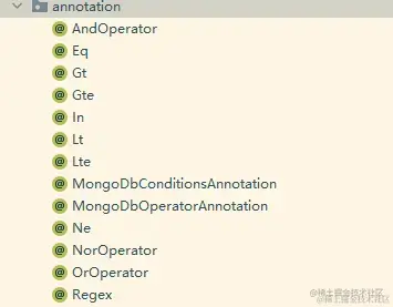 由于之前工具类只能构造相等条件,其他条件构造不了,导致很有缺陷.就在想怎么由一个对象来构造条件,由于Spring已经封装的很好了,我们只要在它基础上加上自己的想法,比如根据对象生成Criteria,Update就行。就想到了在字段上加上注解标明一些信息,然后再由这些注解的处理器来对Criteria或者Update添加条件就行。