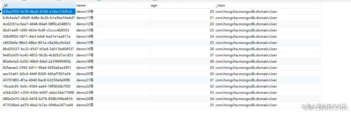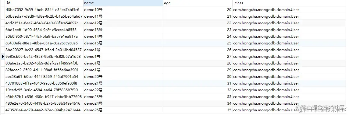 list.add(new User(UUID.randomUUID().toString(), "demo" + i + "号", 10 + i));