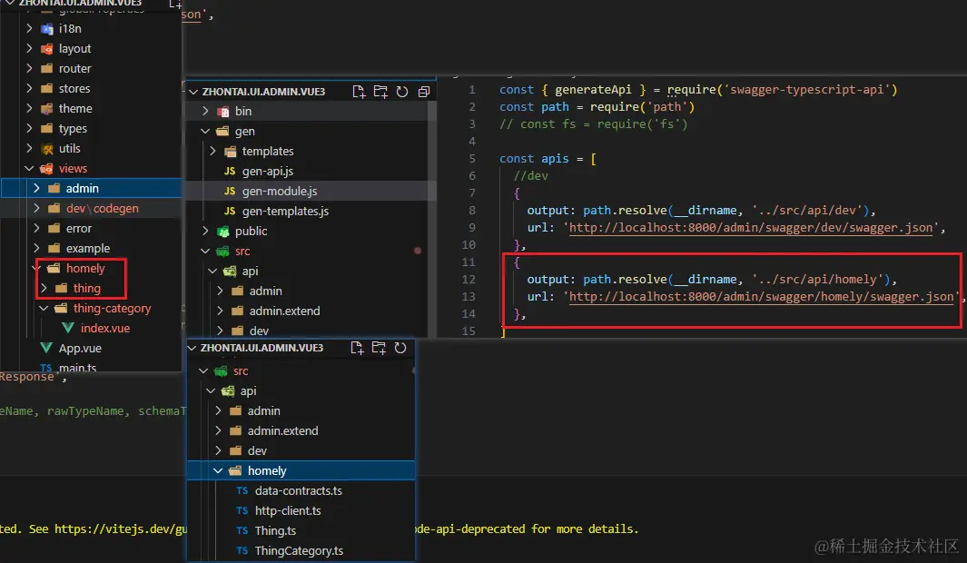 npm run gen:api重新生成接口映射,会把后端接口转为前台可以直接调用的 ts 代码