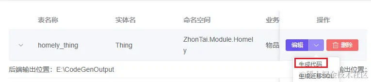 创建完成后点击按钮【生成代码】即可