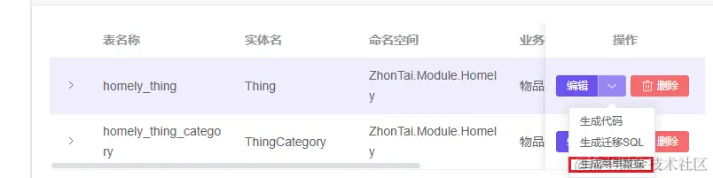 - 当然,也可以直接创建表生成代码&创建表,这里以新建一个家常管理系统的模块作为演示