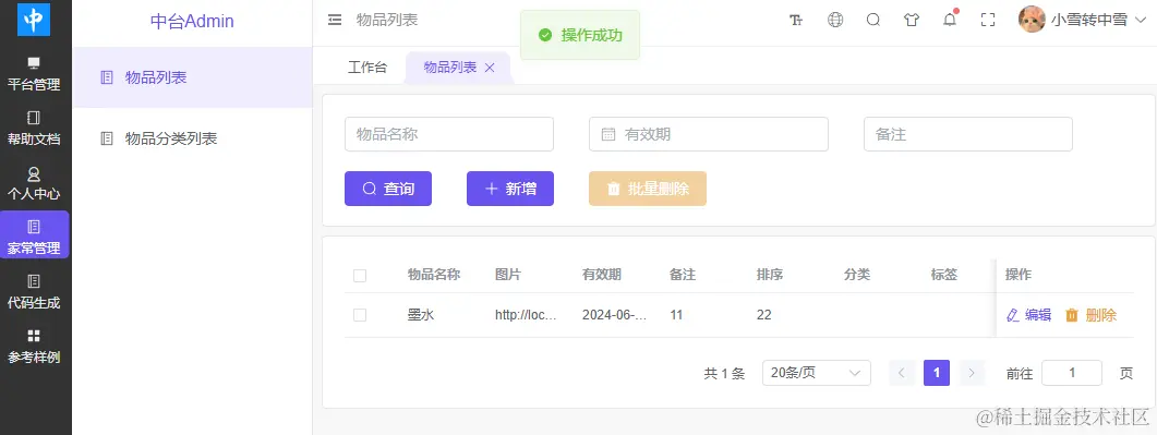 生成成功,刷新页面,一个简单的物品管理的基础功能就出来了