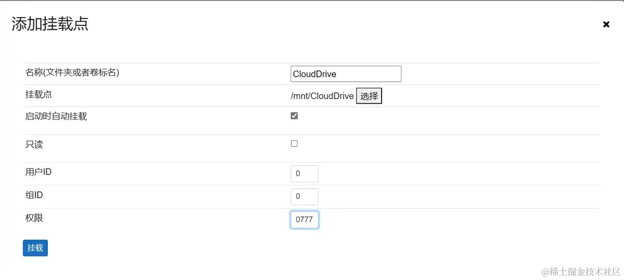 如图填写完成后点击挂载