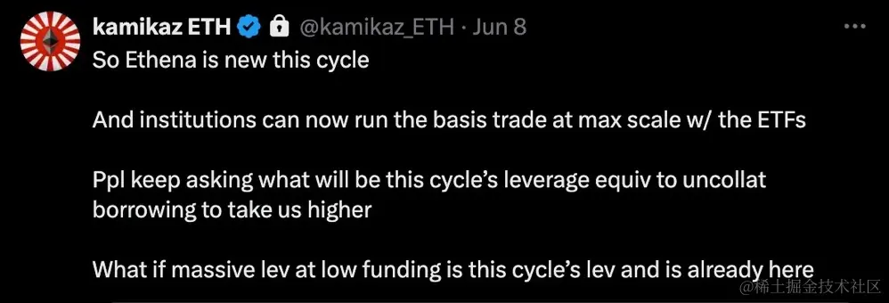 这种策略与 Ethena 相同。但如 Kamikaz ETH 指出的,「如果低资金的大规模杠杆就是本周期的杠杆,且已经存在,该怎么办?」当资金变为负数时(投资者不再看涨并关闭多头头寸)会发生什么?当这些头寸需要平仓时,Ethena(由散户主导)和现货 BTC + CME 期货空头(由机构主导)会导致大崩盘吗?
