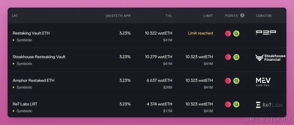 类似的,Mellow protocol 推出了由「策展人」管理的 LRT,使「储户能够更灵活地处理他们所希望的风险敞口,同时从质押资产的流动性中获益」。