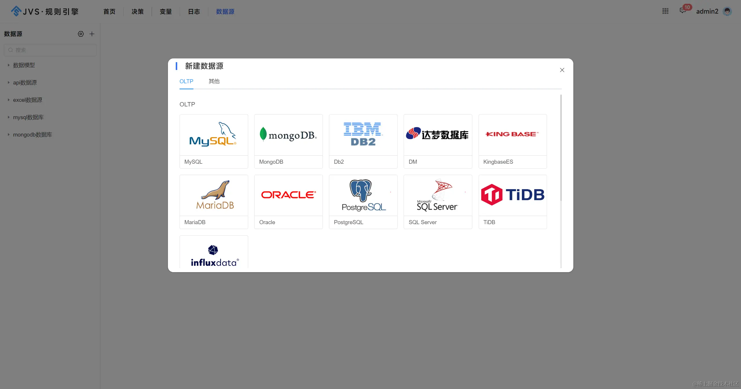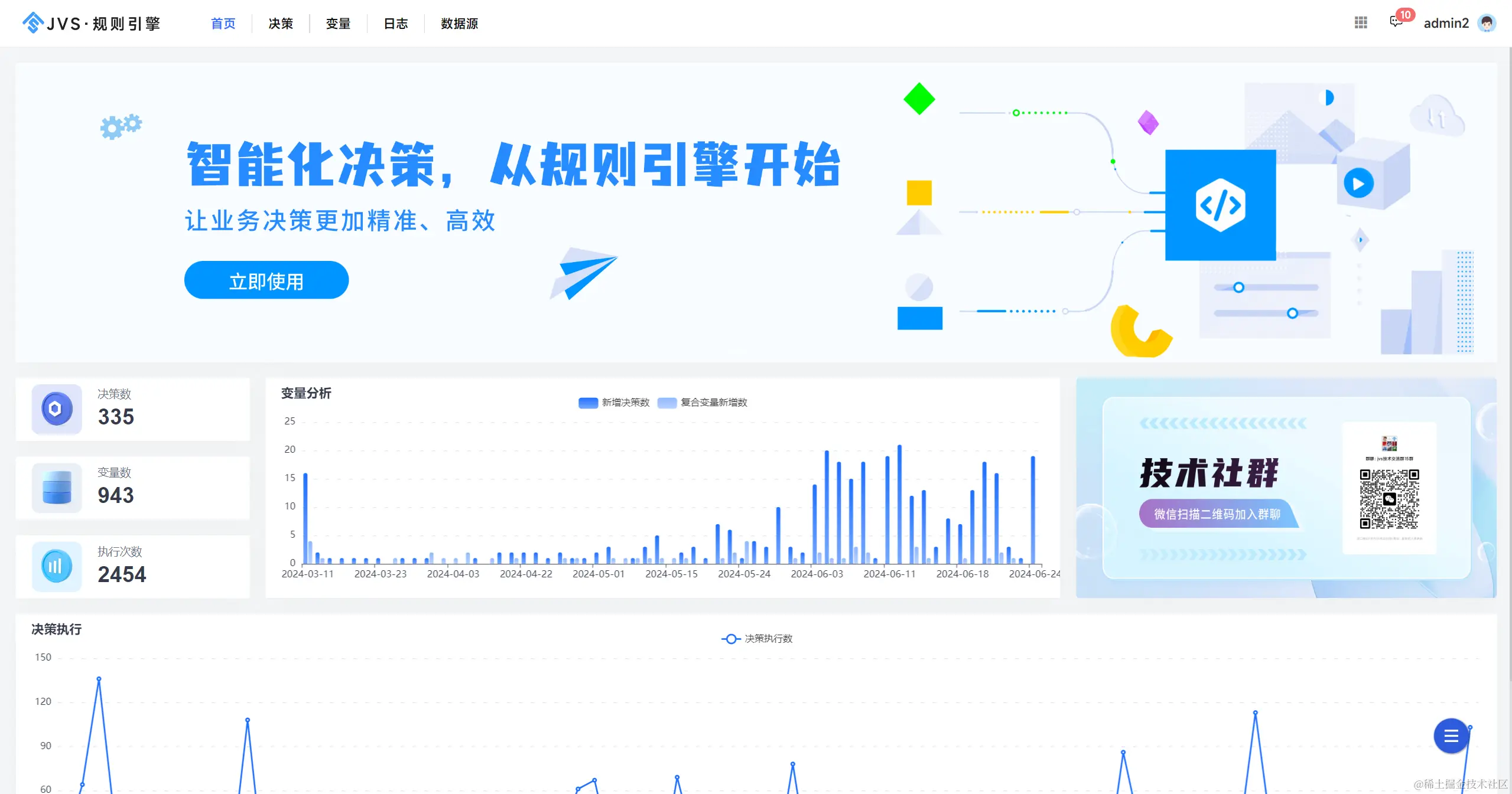 JVS规则引擎是基于JVS逻辑引擎构建的规则引擎。侧重于规则判断,主要用于金融风控、风控决策、规则过滤、行为评分、营销、计息等场景,本项目采用spring cloud+vue构建,支持在线的变量加工、界面拖拽、在线测试等多种功能,包含完整的前后端。