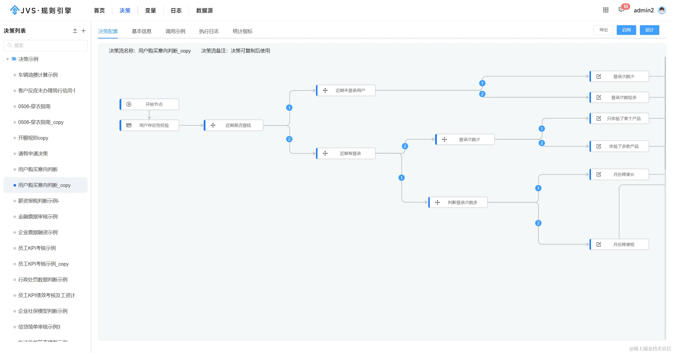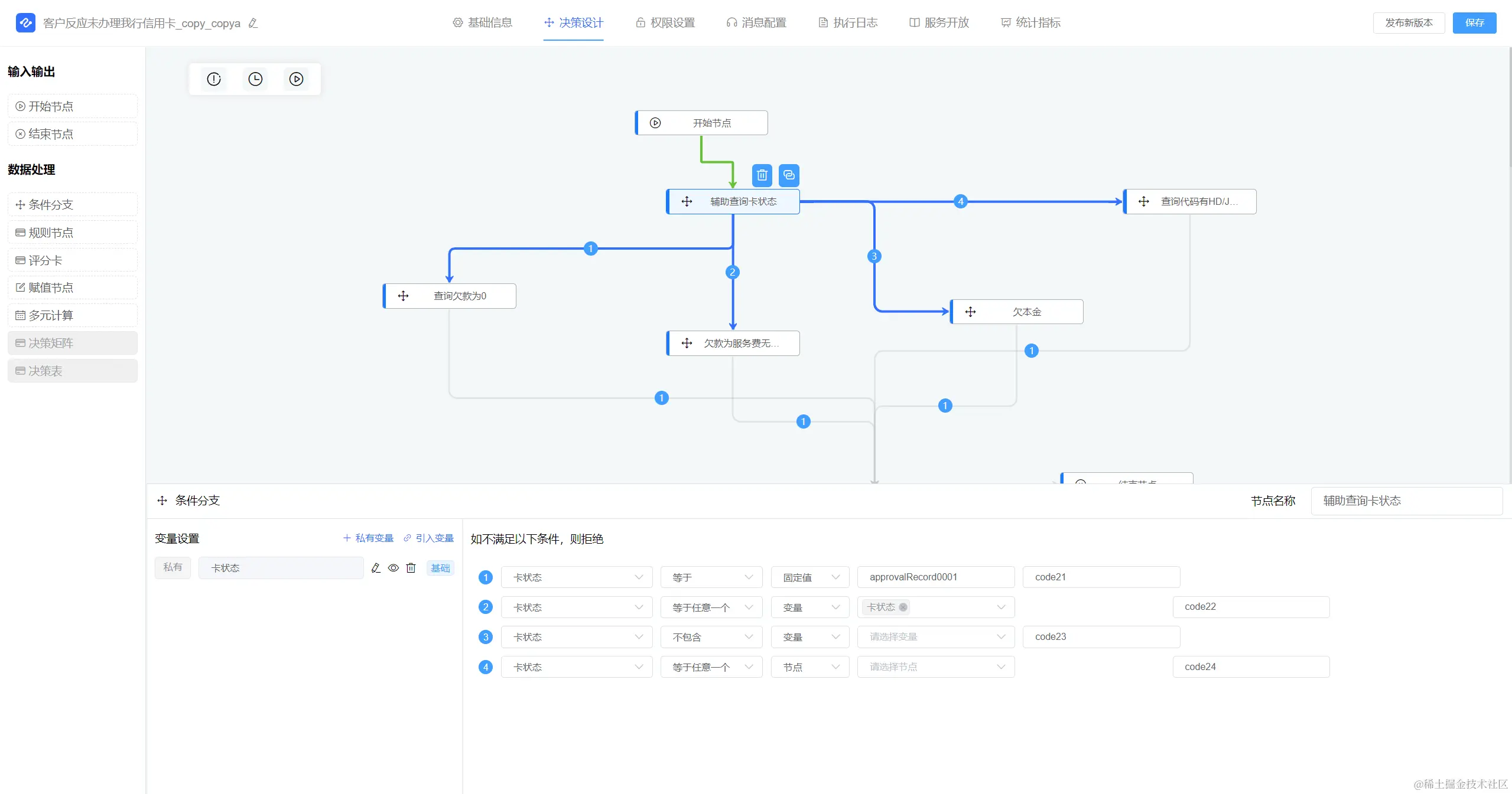 决策设计页:界面化的拖拽配置,更加清晰的表达判断逻辑,将业务规则与技术实现分离