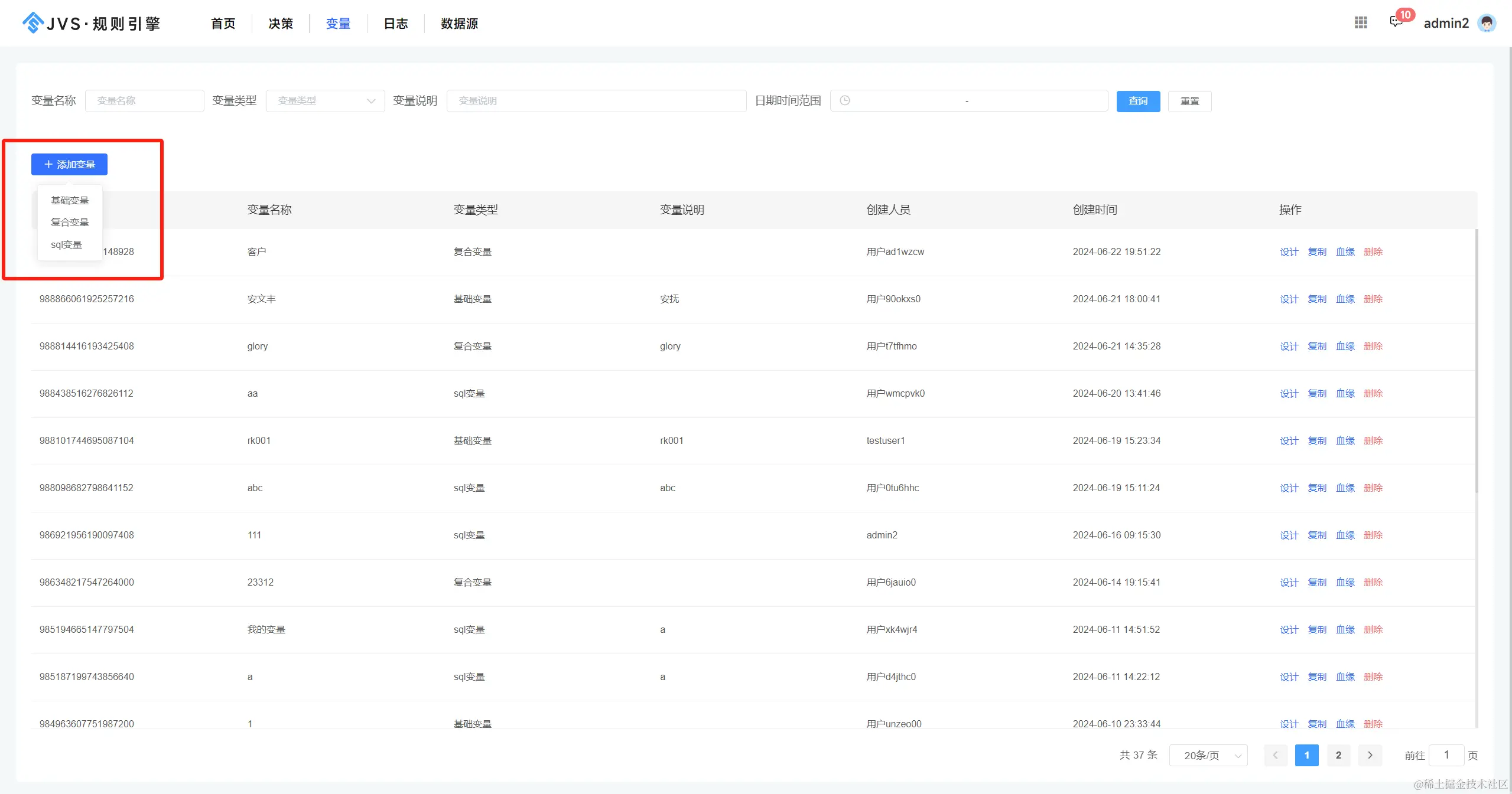 变量:支持复合变量、基础变量、sql变量,可扩展