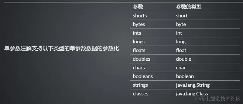 // @ValueSource 单参数注解,示例中为String类型参数化