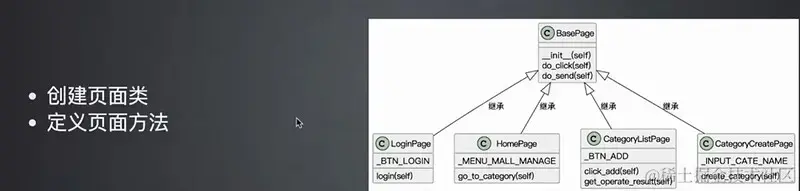 - 思想是:把浏览器中的页面作为类,页面中的元素作为类中的属性,页面的功能抽象为类的方法。