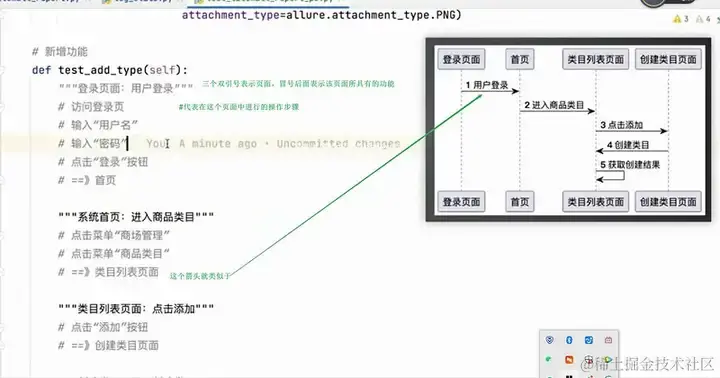 - 第一步:梳理测试用例,明确用户的测试步骤,写入到注释中,用来描述操作流程,方便后续编写代码。同时确定好前置和后置动作。
