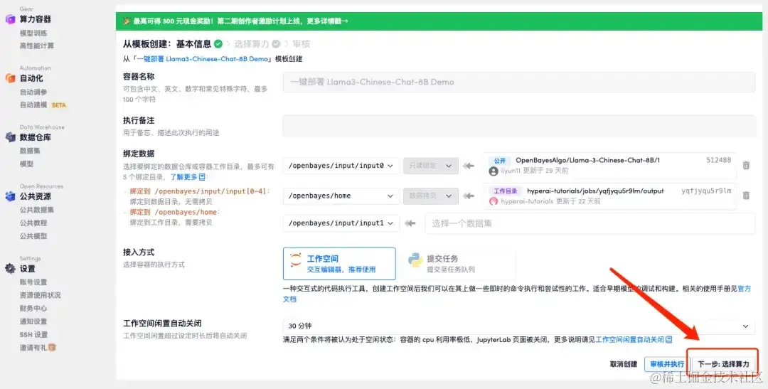 - 点击右下角「下一步:选择算力」。
