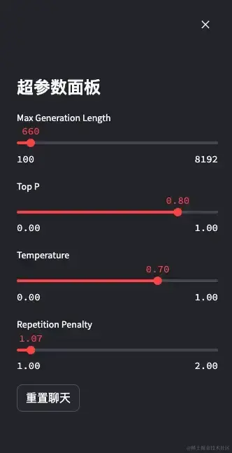 Repetition Penalty: 控制生成文本中重复内容,数值越高意味文本中相同的短语或者词汇出现的次数越少。
