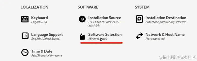 在安装操作系统过程中,software选择openGauss,安装操作系统时候默认安装上openGauss数据库。