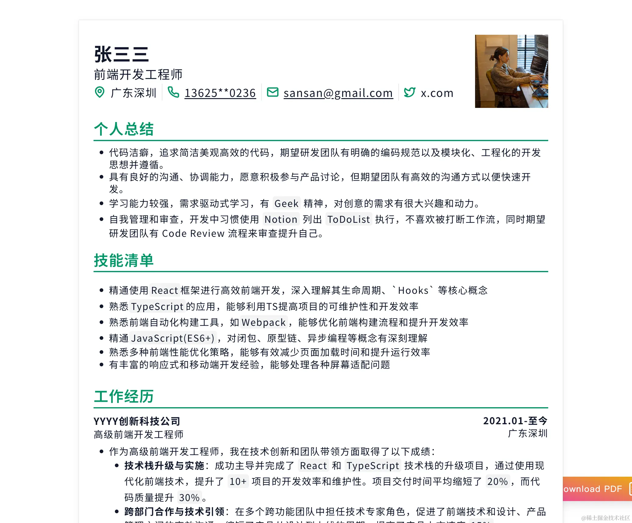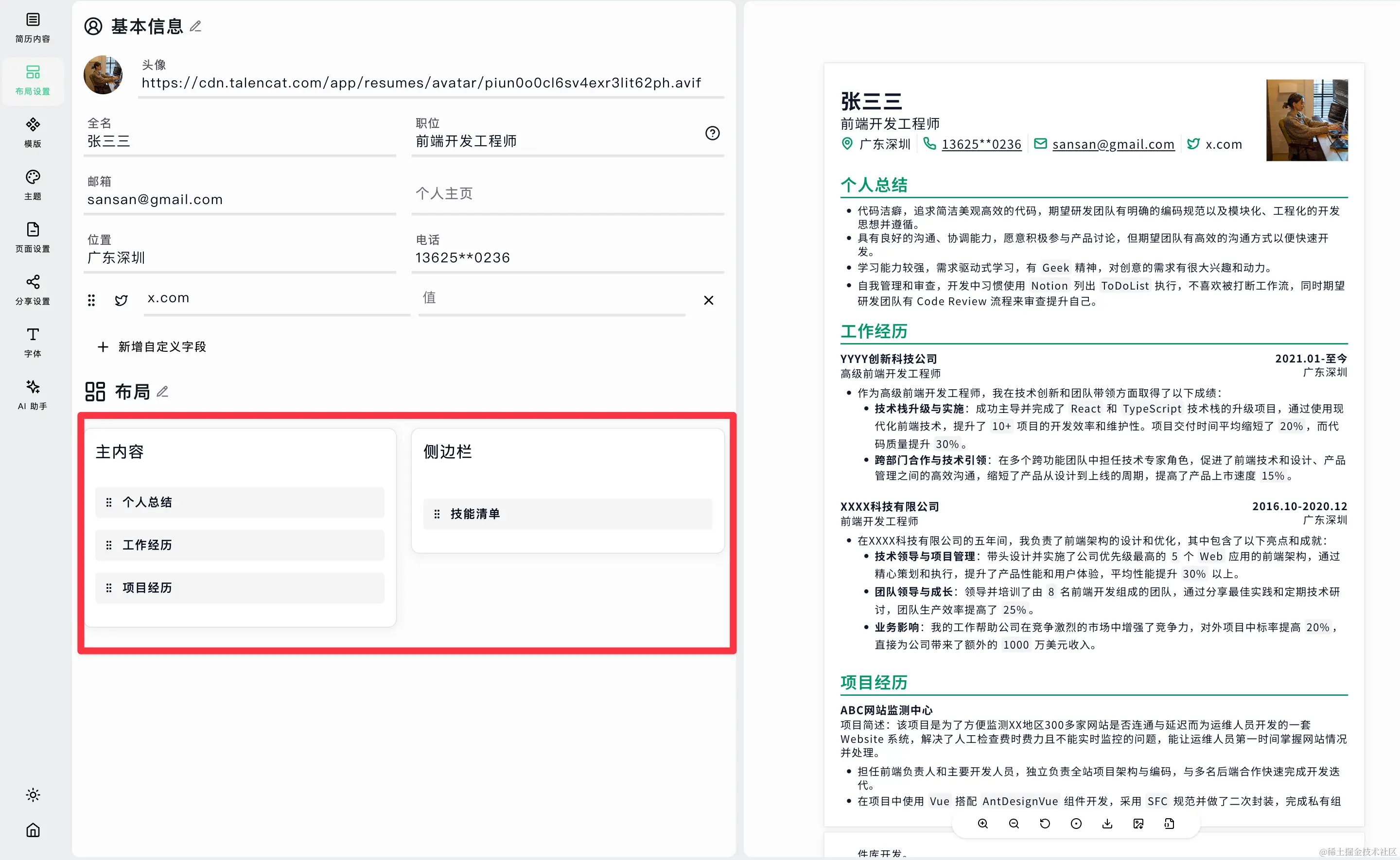 https://talencat.cn - 目前这个软件是免费使用的,建议大家如果需要写简历的可以趁现在赶紧试试,免费帮看前端简历喔。