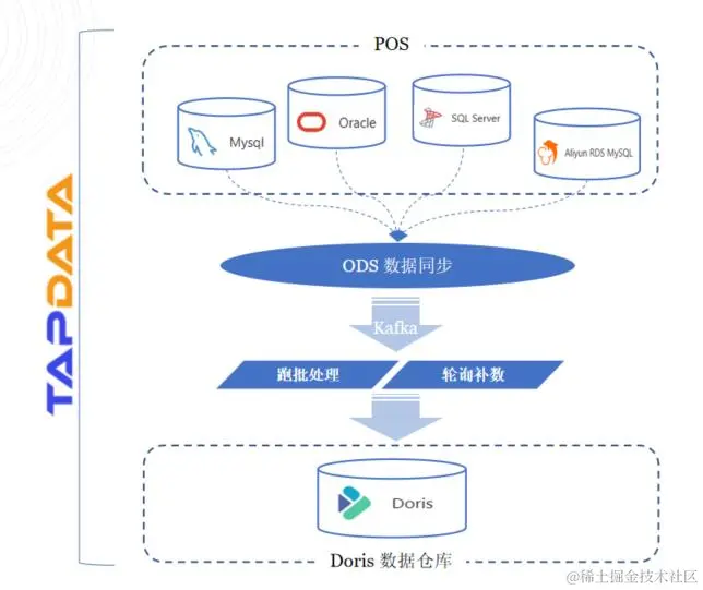 进 Doris 数仓:通过Tapdata的解决方案,数据能够高效地进入Doris数据仓库,实现集中管理和高效查询。