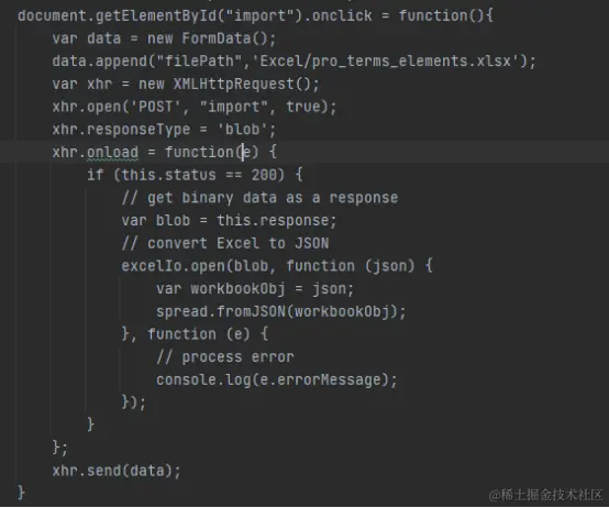 在JS中初始化SpreadJS和导入导出Excel相关的ExcelIO对象。