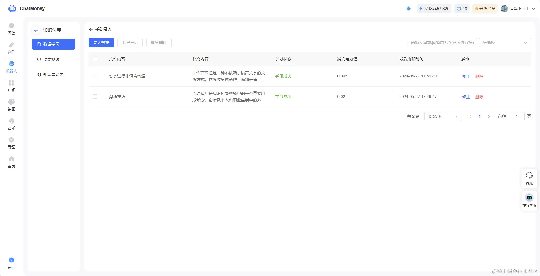 - 数据修正支持:ChatmoneyAI提供数据修正功能,帮助用户修正知识数据,优化决策,实现精准营销。