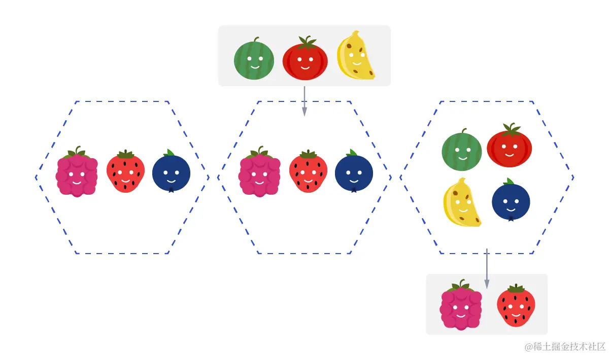 现在我们尝试添加三个新水果,但有一个小的改动。新添加的水果都设置了 trueberry,具有更高优先级。