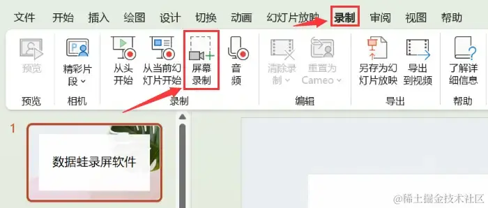 PowerPoint用于制作PPT文稿,但它其实还有好用的录屏功能,可以让用户轻松录制他们在PPT演示文稿中的操作和声音。首先需要点击右上角的 【录制】 ,再点击 【屏幕录制】 ,框选好录制的区域就可以进入录制模式。但PPT录制视频更多的仅限于PPT讲义的录制,使用范围有限。