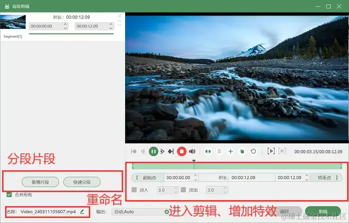 第五步:视频录制完毕后,你可以通过预览视频或者历史录制中进入 【高级剪辑】 页面,对您录制好的视频进行分段、剪辑、增加特效等。