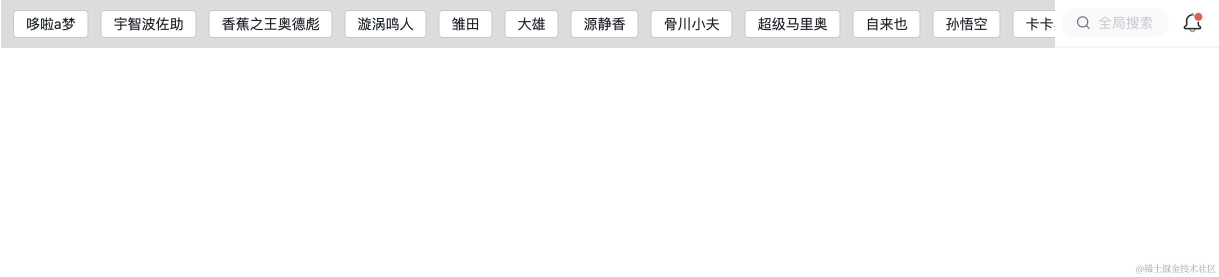 既然要开发这个效果,干脆就封装一个通用组件AdaptiveMenuBar.vue吧。我们先写一下基本样式,如图,灰色区域就是我们的组件内容,也就是我们菜单栏动态展示的区域。