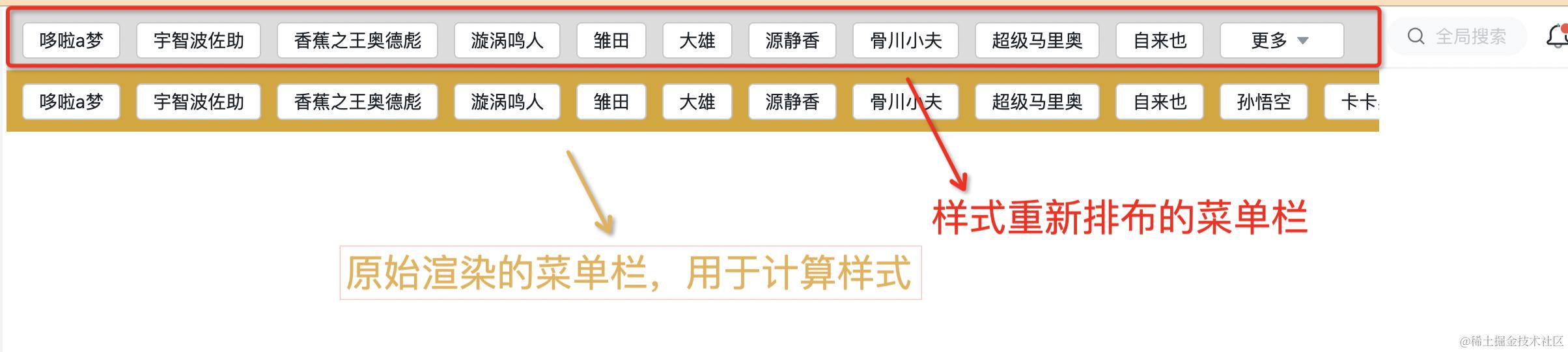所以,我们实际需要渲染两个菜单列:一个原始的,一个样式重新排布后的。