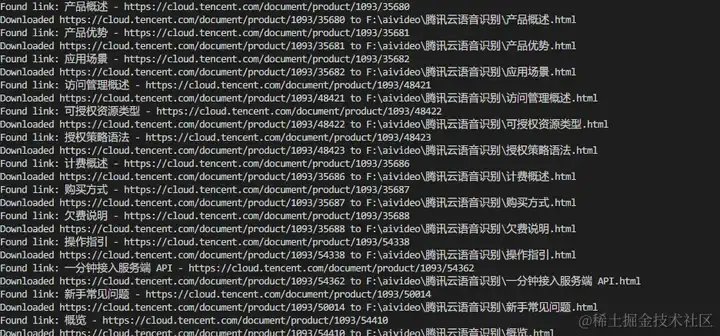 然后定位div标签中所有a标签,提取title属性值作为网页文件名,提取href属性值作为网页下载地址,下载网页,保存网页到文件夹:F:\aivideo\腾讯云语音识别