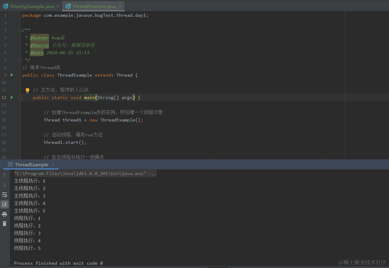 // 创建ThreadExample类的实例,即创建一个线程对象