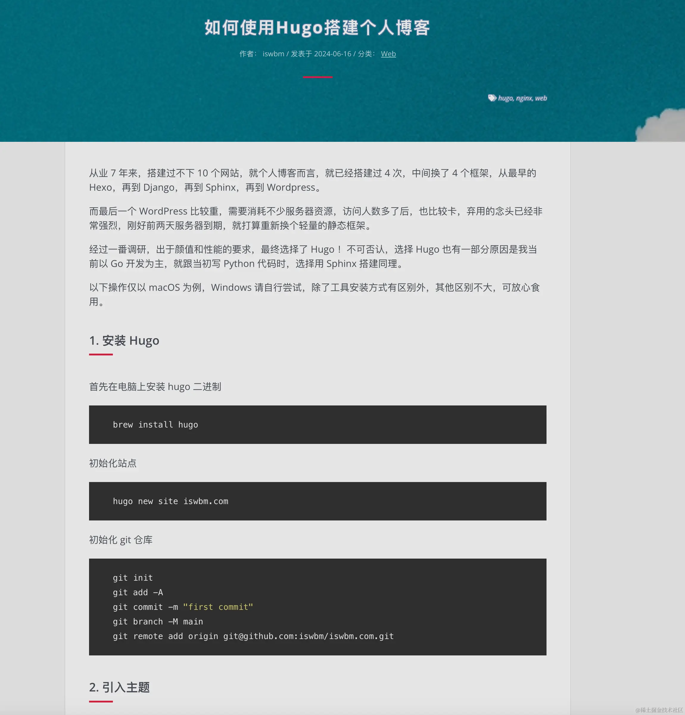 让我决定选择使用 hugo,其实就是无意中浏览了 pseudoyu 的个人站点(www.pseudoyu.com/ ),非常钟意这个主题。