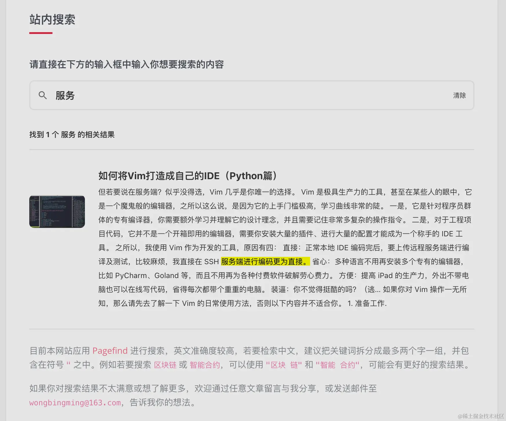 >如果你对搜索结果不太满意或想了解更多,欢迎通过任意文章留言与我分享,或发送邮件至 `wongbingming@163.com`,告诉我你的想法。
