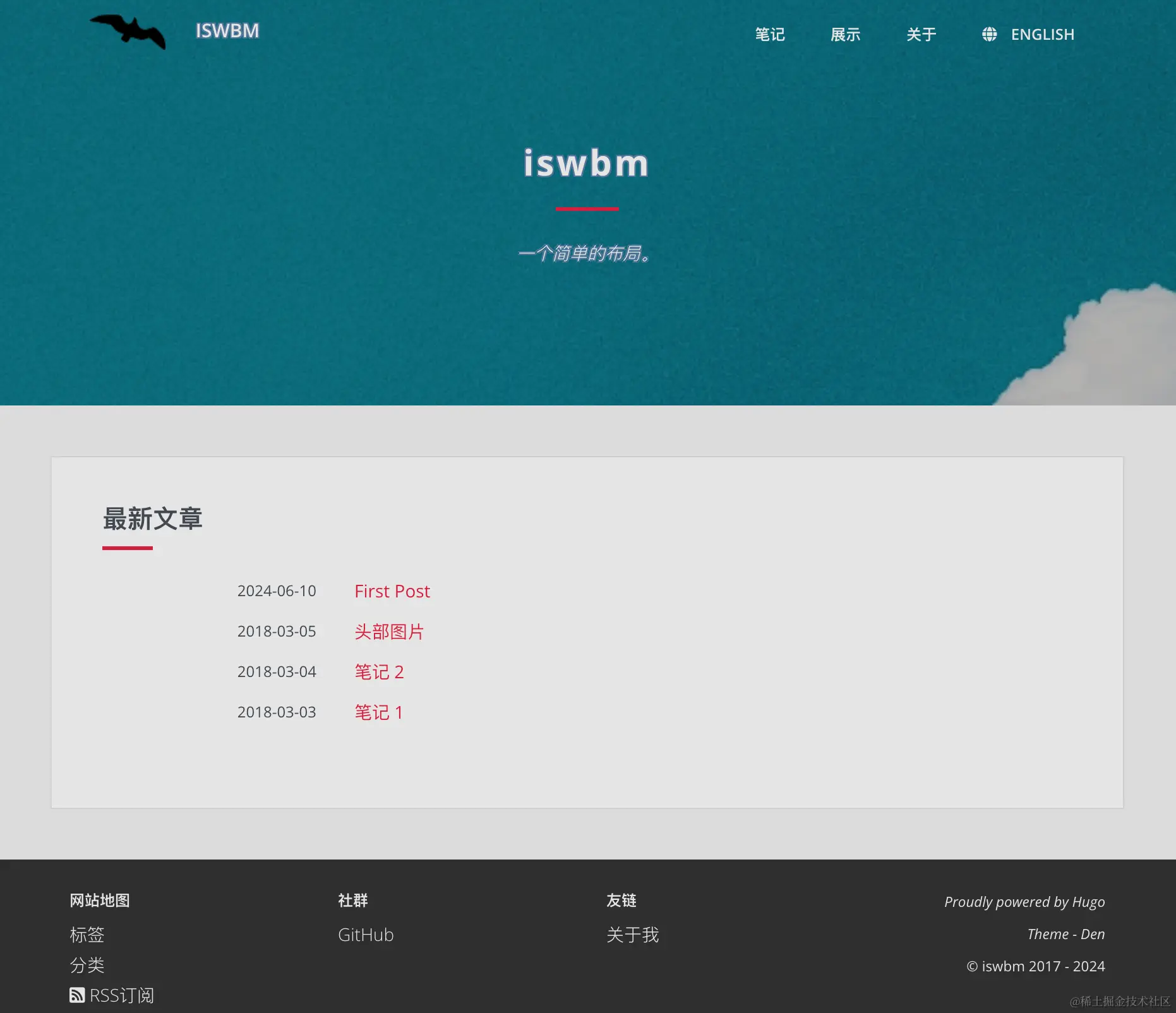 git submodule add https://github.com/iswbm/hugo-theme-den.git themes/hugo-theme-den