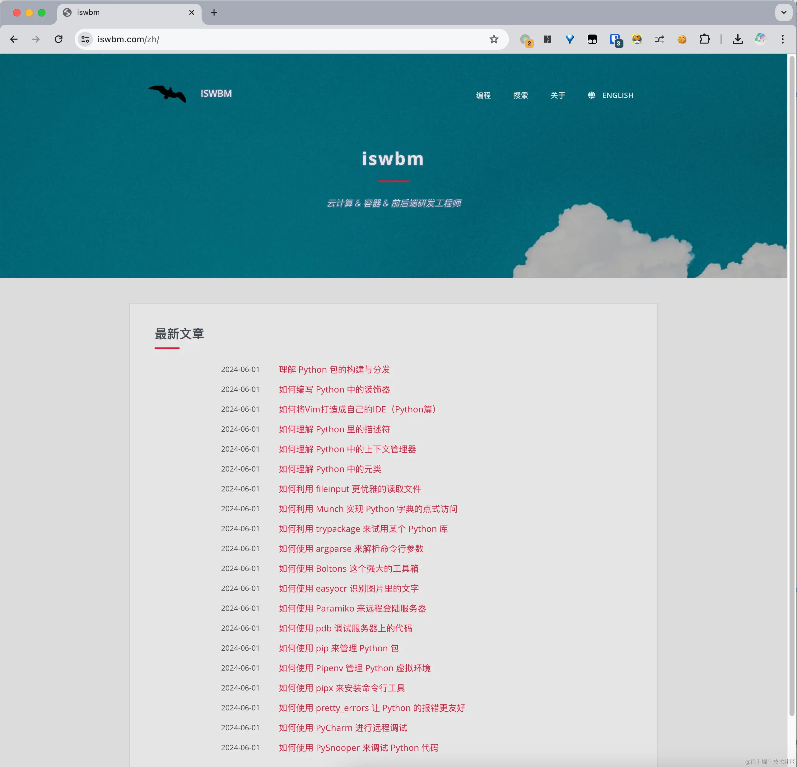 配置完后,直接重启 nginx,访问你的域名即可,以我的网站为例效果见下,干净简洁而且轻量,目前只整理了早期极少部分的文章,后续再花个时间慢慢搬过来
