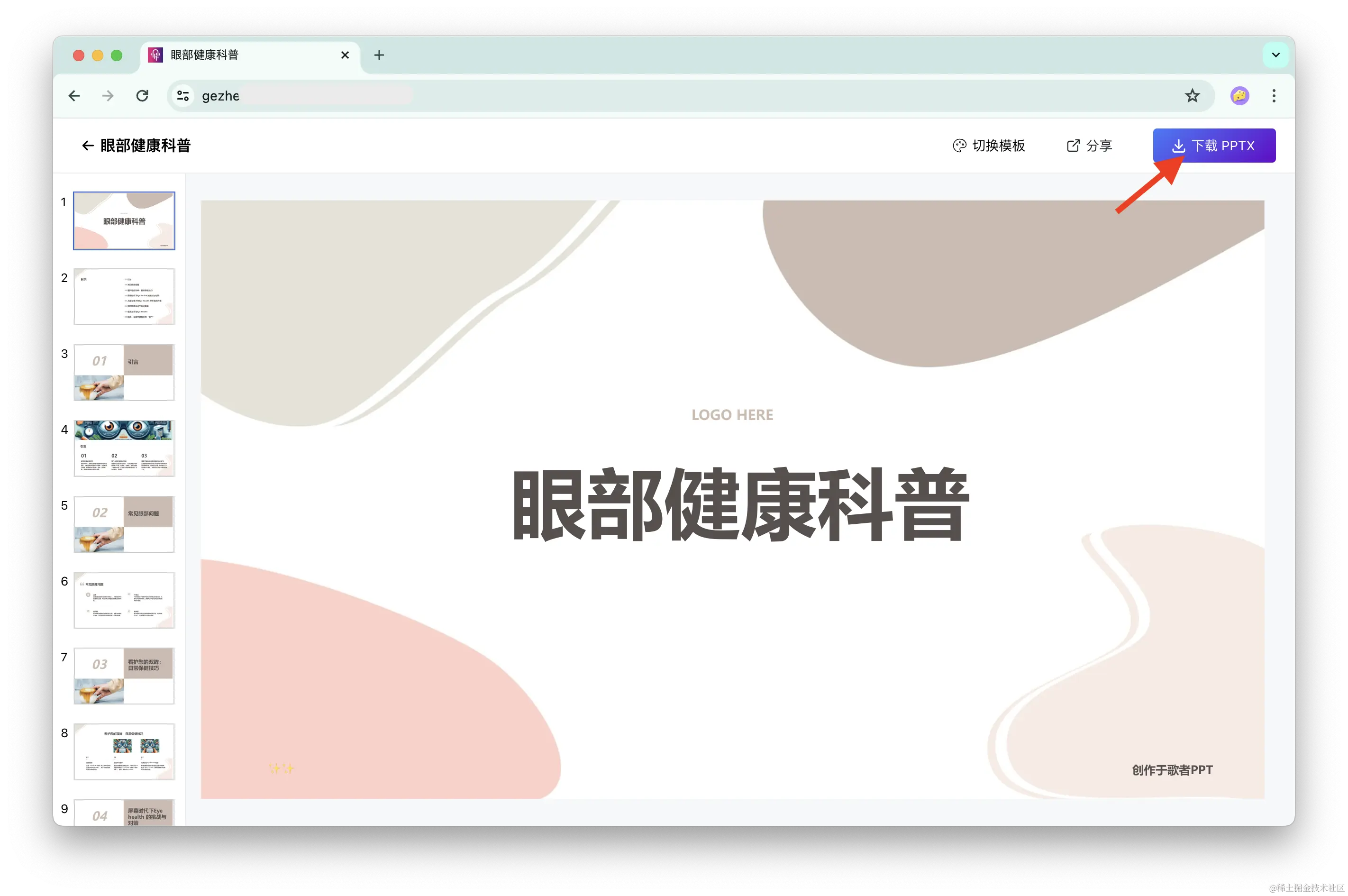 **PPT 生成后,可以将 PPTX 文件下载到本地,**后续使用 PowerPoint 或 WPS 工具进行更深入的编辑和个性化调整。